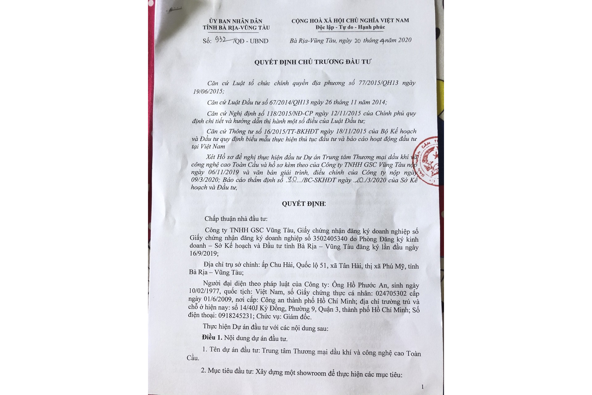 CHỦ TRƯƠNG DỰ ÁN VŨNG TÀU