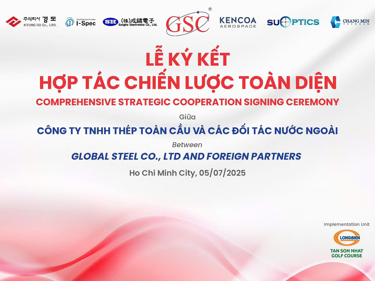 Tại Tân Sơn Nhất Golf Course, đã diễn ra Lễ ký kết Hợp tác toàn diện Công ty GSC và các đối tác Hàn Quốc hoạt động trong lĩnh vực an ninh quốc phòng và hàng không vũ trụ.