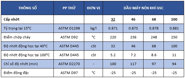 1) MÔ TẢ: Dầu nhớt máy nén khí GSC được thiết kế cho các hệ thống máy nén sử dụng bánh răng và ổ trục, được đánh giá cao khi sử dụng cho các trục khuỷu. Dầu nhớt máy nén khí GSC được pha chế với các loại dầu gốc khoáng chất lượng cao cùng các phụ gia hiệu suất cao để bảo vệ thiết bị và mang đến độ tin cậy đặc biệt cho máy nén hoạt động trong điều kiện từ bình thường đến khắt khe. Dầu được sử dụng cho tất cả các máy nén khí chịu ứng suất cao, là các loại máy yêu cầu dầu VCL/VDL với phụ gia DD để đánh bật và lưu chuyển bụi bẩn tốt. Dầu nhớt máy nén khí GSC được sản xuất theo tiêu chuẩn Đức, có thể cung cấp dầu máy nén tốt nhất cho các máy móc cụ thể. 2) MỨC HIỆU SUẤT: Đạt chuẩn: DIN 51 506 3) ỨNG DỤNG: Sử dụng cho các loại máy nén khí trục vít, piston, ly tâm,… 4) ƯU ĐIỂM: - Ngăn ngừa rỉ sét và ăn mòn. - Tăng thời gian vận hành, kéo dài thời gian giữa các lần bảo trì. - Cải thiện hiệu suất của van. - Chi phí bảo trì thấp. Làm sạch động cơ tối đa. 5) ĐẶC TÍNH TIÊU BIỂU |