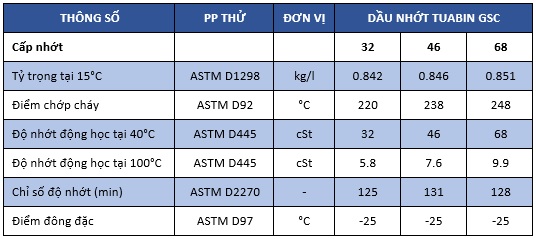 1) MÔ TẢ: Dầu nhớt Tuabin GSC được sử dụng trong các tuabin khí và tuabin hơi nước hiện đại. Nó được thiết kế để cho phép hiệu suất oxy hóa cao hơn mức yêu cầu của thông số kỹ thuật dầu tuabin hiện đại, bao gồm các yêu cầu RPVOT và TOST. Dầu nhớt Tuabin GSC được sản xuất theo tiêu chuẩn Đức, sử dụng cho tuabin khí và hơi nước, cũng sử dụng cho hộp số và làm chất lỏng điều khiển cho các tuabin nhà máy và máy nén turbo. 2) MỨC HIỆU SUẤT: Đạt chuẩn: DIN 51 515-1 and -2; ASTM D-4304 Type I & Type III; Alstom HTGD 90017; British Standard BS 489; General Electric GEK-32568F; ISO 8068 TGB TGSB & ISO 8068 TSA TGA; ISO 11158 HH & HL; Siemens AG TLV 9013 05 High Thermal Stability. 3) ỨNG DỤNG: Sử dụng để bôi trơn và làm mát các ổ đỡ và hộp số trong các tuabin hơi nước, tuabin khí, tuabin thủy lực và các thiết bị phụ trợ như hệ thống điều khiển tuabin, hệ thống dầu làm kín, các khớp nối turbo và các máy nén khí turbo. 4) ƯU ĐIỂM: - Tăng cường khả năng chống oxy hóa. - Khả năng khử nhũ hóa dầu nổi bật (khử nước khỏi dầu). - Hiệu suất lọc tuyệt vời ngay cả khi dầu nhiễm nước và canxi. - Khả năng chống gỉ và chống ăn mòn kim loại nổi bật. 5) ĐẶC TÍNH TIÊU BIỂU |